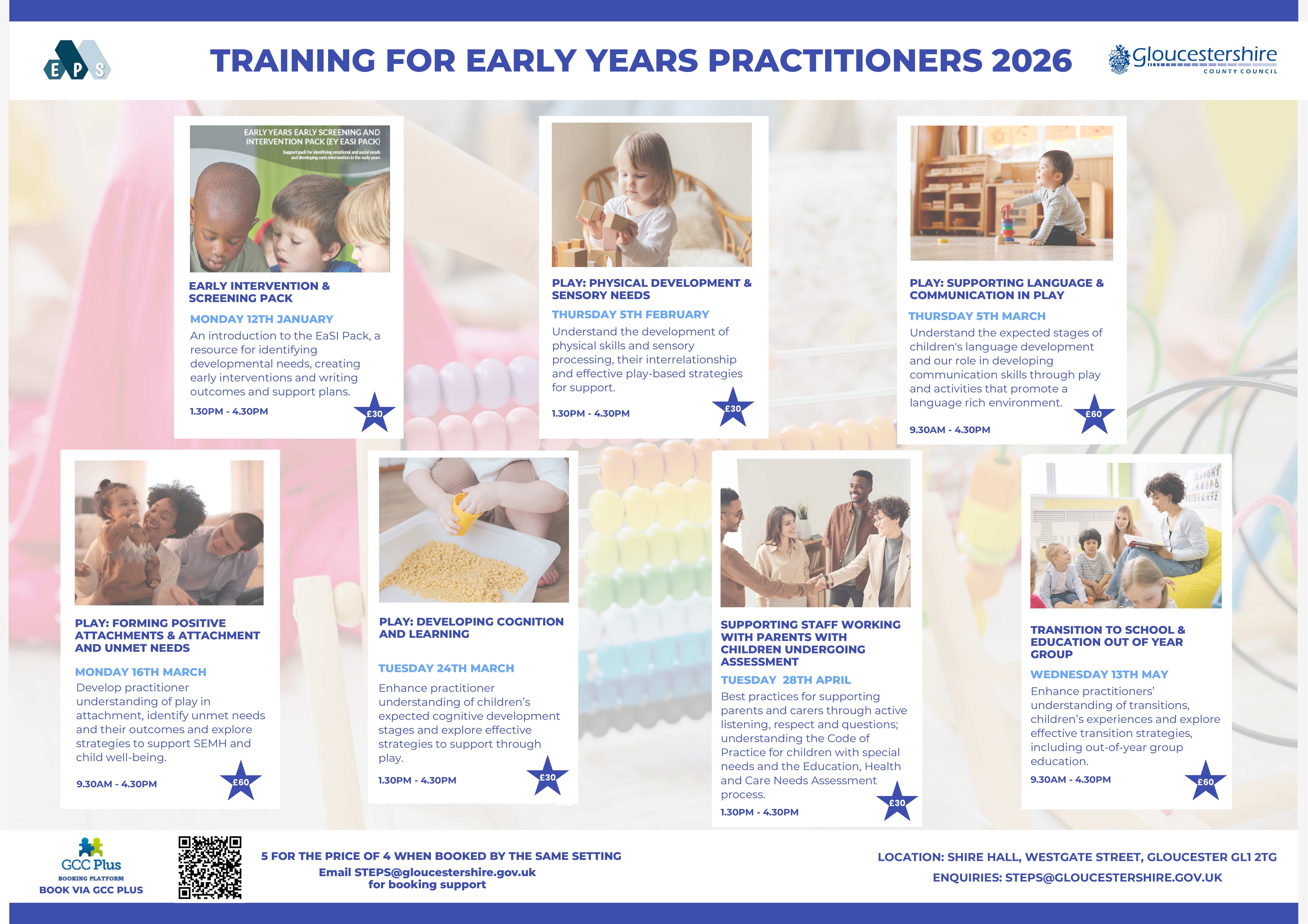 Our centrally held training events are available to all Pre-school and Nursery staff across Gloucestershire. We can provide: