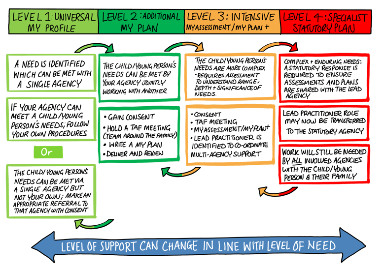 If you need help with the Graduated Pathway (for example, implementing a My Plan, My Assessment and My Plan +; coordinating TAF, or you simply need to understand the role of the lead practitioner), please contact early help via the Gloucestershire children's helpdesk: