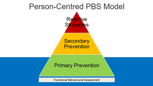 4.3 The PBS model pyramid shows how PBS implements a range of support, starting with broad strategies (primary prevention) that benefit everyone and progressing to more targeted and individualized interventions (secondary prevention and reactive strategies) as needed.