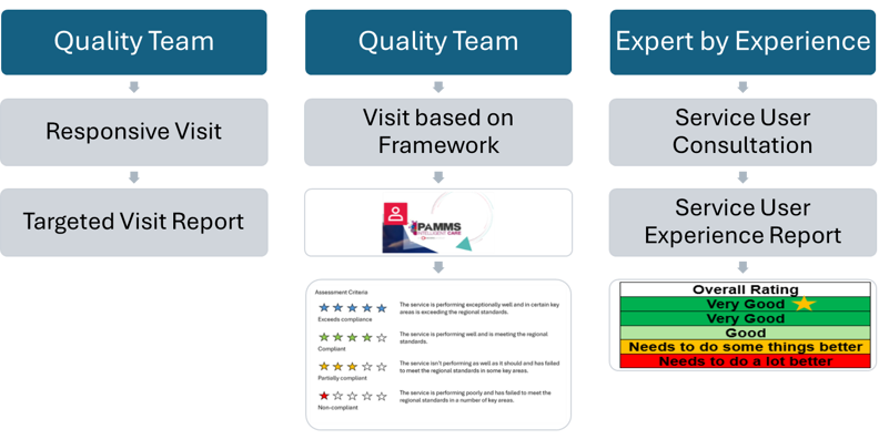 The Commissioning Quality Officers conduct Quality Reviews by visiting and speaking to providers and the people they support. They assess care and support delivery to ensure it is a high standard and that services are fulfilling their contractual obligations. Following this review the Officer will develop an action plan with timescales which will address any issues found during the visit. The objective is to provide support, guidance and implement best practice wherever possible.