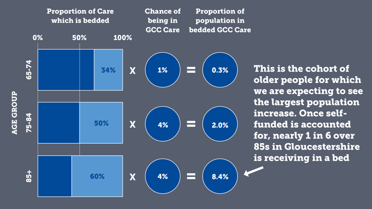 Whilst the key commissioning priority since the last market position statement has been to reduce unnecessary use of residential care beds, demographic projection data shows the population of over 85s  is expected to grow rapidly, and our study of demand shows that those over 85s are much more likely to need care, and that the care they need will be more likely to be bed-based.