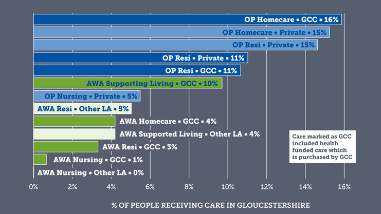 The demand for adult social care does not just come from those individuals who have services commissioned by the local authority. There is also a significant market for older adults in Gloucestershire who fund their own care and many placements are made into Gloucestershire by other local authorities for adults of working age.