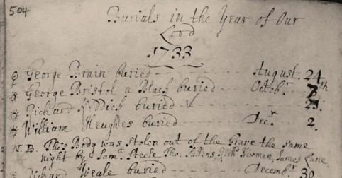 Grave robbing, Awre Parish Register