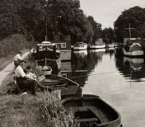 Angling is the art or sport of fishing with a rod and line and either a fly or bait, where the object is to have fun catching fish that are not always going to be eaten. This scene at Saul Junction – shows an old boy fishing on the Stroudwater Canal….you can feel the tension waiting for the float to dip!