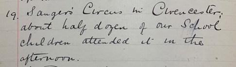 In July 1913, Sangers Circus visited Cirencester and several local schools – such as Ampney Crucis here – gave children half-day holidays to go and see it. The modern Big Top circus has a complex history, and no-one agrees on its origins – although the first true ‘circus’ in Britain opened in 1768. Typically made up of diverse entertainments including clowns, acrobats, trained animals, trapeze acts and much more, the arrival of a circus in towns drew immense attention. Sangers Circus, which ran from 1854 to 1911, was perhaps the greatest circus in Britain – its road train alone was said to be two miles long and number over 100 wagons!