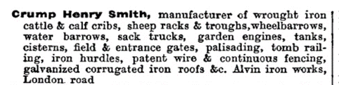 A pair of iron foundries once existed in Kingsholm; the Alvin Iron Works on Alvin Street (now Gloucestershire Heritage Hub), owned by Henry Smith Crump and in operation from around 1860 to 1930 and the Kingsholm Foundry on Sweetbriar Street/Foundry Street (the site is now Kingsholm Primary School) in the early 1830s until the 1940’s(?). Sadly relatively few archive records have survived for either firm. The Alvin Works specialised in agricultural equipment and it won many agricultural show medals during the 1870s and 1880s, before demand for metal during WW1 caused the eventual demise of the business. An iron plate from the company can be seen today on one of the static carriages at the Gloucestershire and Warwickshire Railway at Toddington.