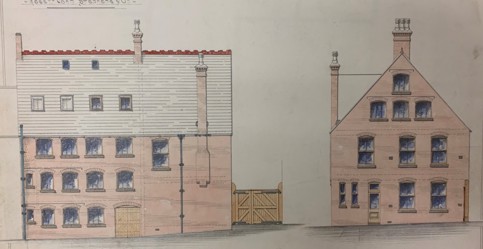 In 1870 John Stephens opened a vinegar & pickle factory in St Catherine’s Street on the site of the old parchment works. By 1881, it employed 30 men and 80 women but by 1901, over 400 were being employed. Around 1887, the site was rebuilt to plans designed by architects Moore & Maberly of Gloucester – this image shows the office block that was built for the firm. In 1901 the company was described as "purveyors, manufacturers, packers, bottlers, and manufacturers of or dealers in pickles, jams, marmalade, fruits, sauces, soup, jellies, food stuffs, provisions, confectionery etc.“ Stephens died in 1911 and in 1919, the company was to be voluntarily wound up to allow a reconstruction, although it actually continued trading until at least 1935.