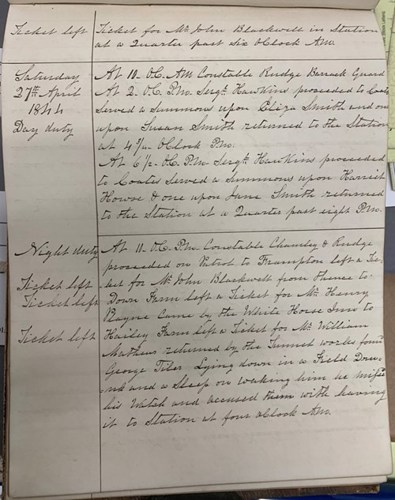 Sapperton Police Station Diary, 27 April 1844