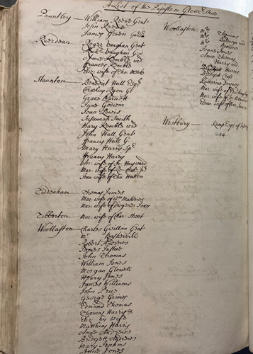 As well as the paths of allegiance, the ‘Fifteen’ – as the Jacobite Rising of 1715 became known – also triggered the Quarter Sessions to record the names of known Papists in the county, listed by place in each of the county’s Hundreds.