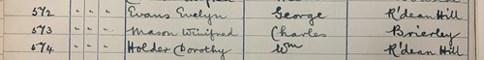 Winifred Foley (nee Mason)- Admission register of Ruardean Woodside County Primary School