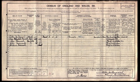 The 1911 Census of England and Wales was taken on the night of Sunday, 2 April 1911. Every census tended to ask for more information than the previous one and in the 70 years since the 1841 census, this had expanded greatly. The 1911 census asked for the following details: name, relationship to head of family, age at last birthday, sex, marriage details (including number of children), occupation (for people aged 10 and over), birthplace, nationality, infirmity (deaf, blind, lunatic, etc.), postal address and military rank and unit if applicable. It also included so-called ‘fertility’ questions. These asked how long a present marriage had lasted, the number of children born alive to the present marriage (including children no longer living in the household) and number of children who had died. More detailed questions about employment were also asked, which were intended to give the government an idea of which industries were in decline, and which were growing. Interestingly, many respondents provided much more information than was needed with people giving the name and sometimes address of their employer in addition to the industry that employed them. These questions were later incorporated in the 1921 census. There are three other points of interest in the 1911 census. Firstly, the enumerators tried to approximate the homeless population, albeit with little success. Secondly, some women’s details are missing. This was due to the campaign for women’s suffrage, as many suffragettes protested by refusing to be counted in the census. Finally, for the first time, the original census forms (in the handwriting of the householders) were preserved, and it is these that you see when looking at the census online.