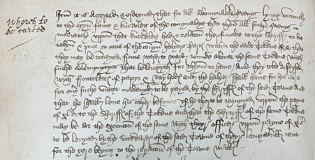 In 1504, Gloucester believed it had a shameful reputation for immoral living and the Borough decided to clean up – before God did it first! This extract from the Borough Council’s Court Leat minutes ordered that ‘notorious qwenys’ (prostitutes) were to be given 'frontlets of paper and hoods’ and then – as noted in the margin as ‘Whores to be carted‘ – they were to be shamed by being put in a cart and paraded around the town. Typically, most of this item is male orientated and sets out the fee paid to the ‘halyer’ for each time he takes his cart round, the fine levied if he doesn’t do this when required and the fine levied on the Sheriff and his officers if they didn’t attend! The minutes go on to say that ‘wedded men and priests and other common qwenys whether she be mannys wyf or single woman’ who consorted with ‘horres, strompetts or with meanes wyffes' were to be brought to the ‘Which’ – we think this is ‘cwtch’, the Welsh word for a cupboard or cubbyhole (or a cuddle!) – which was a cage in the marketplace, used to imprison offenders. Repeat offenders were either banished or threatened with the pillory if they did not comply - the stocks and pillory stood in Southgate Street, adjacent to Love Lane (the importance of which might be obvious!), making punishments extremely public.
