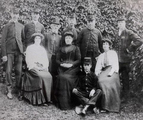 This is the Postmistress and staff – two female clerks, 6 postmen and a postboy – of Chalford Post Office in 1900. Women were only officially employed by the Post Office after 1870, but prior to this they could work as Sub-Postmistresses, undertaking postal duties on a commission basis in addition to their running their own businesses. An example is Flora Thompson’s Dorcas Lane in Lark Rise to Candleford, who was a sub-postmistress but also the owner of the adjoining blacksmiths, which she had inherited from her father when he died. The postmistress here was unmarried – if she married, she would have had to resign her post – still at least she didn’t have to deal with the Horizon IT system!