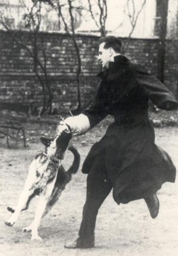 Gloucestershire Constabulary introduced the first dog unit and dog handlers in 1959. When it formed, the unit consisted of eight dog handlers and a Sergeant-in-charge. This photograph shows Constable Deacon with an unknown police dog in training. The dog may possibly be ‘Prince’, Gloucestershire Constabulary’s first police dog.