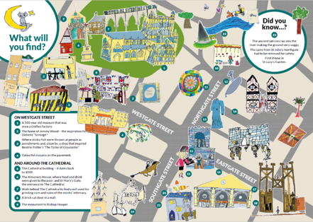In the summer of 2023, six local primary schools undertook tours of the four historic ‘gates streets’ of Gloucester city centre with Gloucester Civic Trust. The children produced artwork and text which were used to create a leaflet and an exhibition held at The Folk.