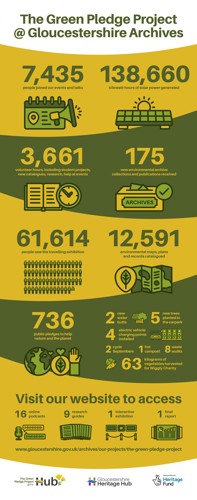 The Green Pledge Project was a two year project spearheaded by Gloucestershire Archives, telling the story of the county’s environmental legacy and driving forward climate action. The project has now come to an end, but the memories, and legacy will continue. We are so grateful to National Lottery Heritage Fund and players for enabling this project to happen. And also enormous thanks to all the amazing volunteers, project partners, libraries, and members of the public who joined us on the journey.