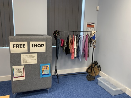 Second hand September is a campaign linking to the waste of the clothing industry, encouraging people to swap their clothing or buy second hand rather than buy new. To get involved we ran a 'Free Shop' clothing rail up in the public facing area.