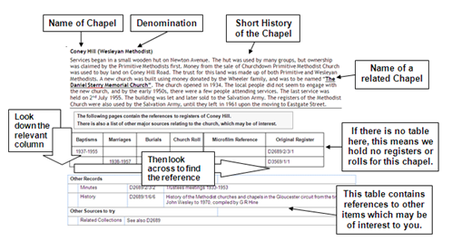 - The genealogical database on our website contains non conformist baptisms for some chapels in Gloucestershire.