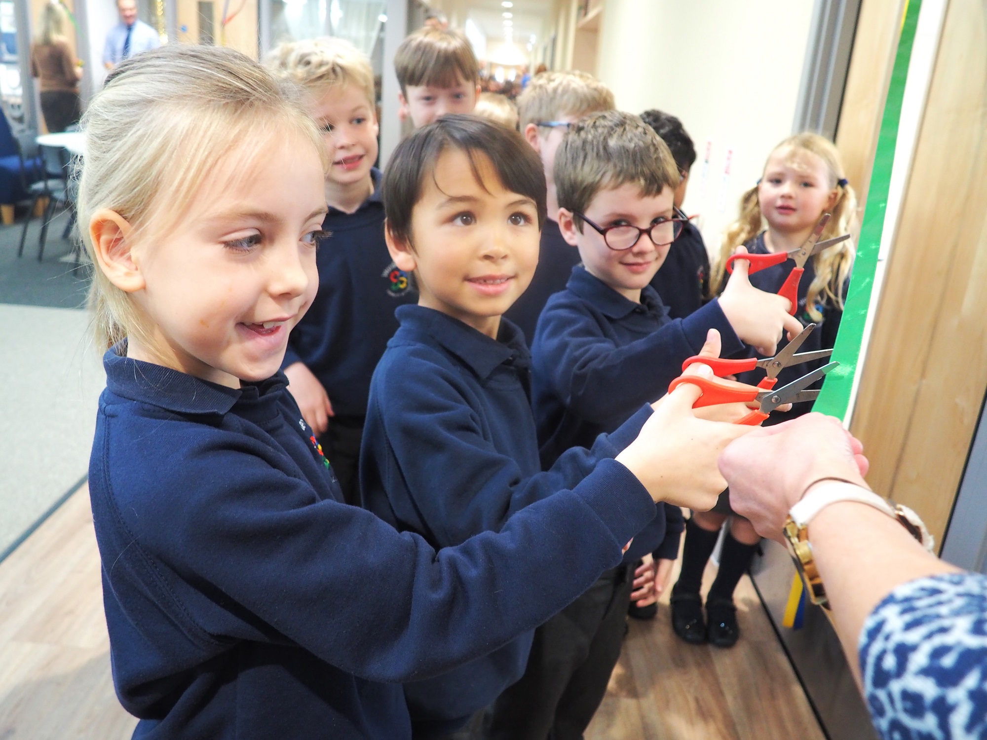 Coloured ribbons were cut by every pupil, the school, Cllr Philip Robinson, the contractor and architect, to officially open the new building.