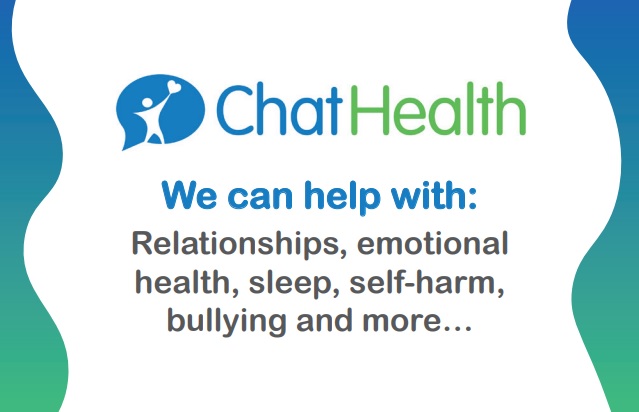 We can help you with your health worries such as anxiety, relationships, physical health and more. Find out more about Chat Health, including contact details or text us using our Chat Health number 07507 333351 Â