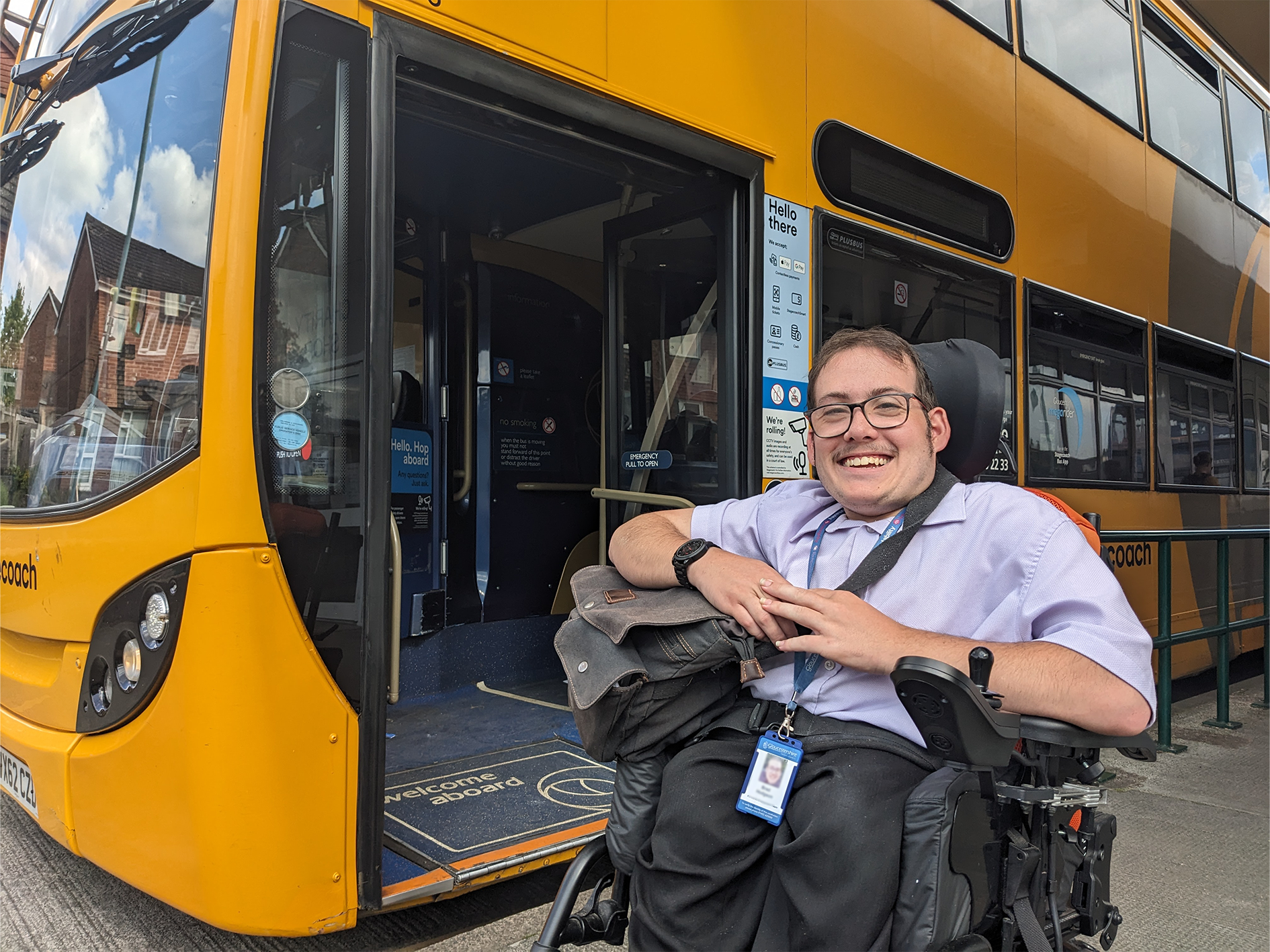 The travel training I received from Tim and his team was amazing, this has really boosted my independence, and I am now able to travel independently on the bus to Gloucester. Now I am working for Gloucestershire County Council I still catch the bus 2 days a week to ensure that I am still able to do so whenever needed. On the other days of the week, I now drive into Gloucester as I now have my driving license.