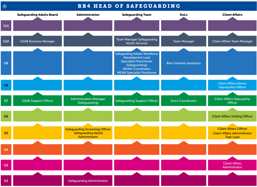 Roles in the team include Team Managers, Best Interest Assessors, DoLS practitioners, specialist Safeguarding practitioners, Screening Officers, Support Officers and administrators.