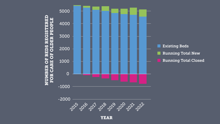 Since 2015, 679 beds have been opened. The vast majority of these have been opened in brand new locations but a small number (23) are new beds in existing locations. In the same timeframe,1,075 beds have closed, most of these beds were not fit for purpose and could not have been kept open. Overall, this has meant a decline in the number of beds in recent years with the overall number of beds dropping from just over 5400 to just over 5000.