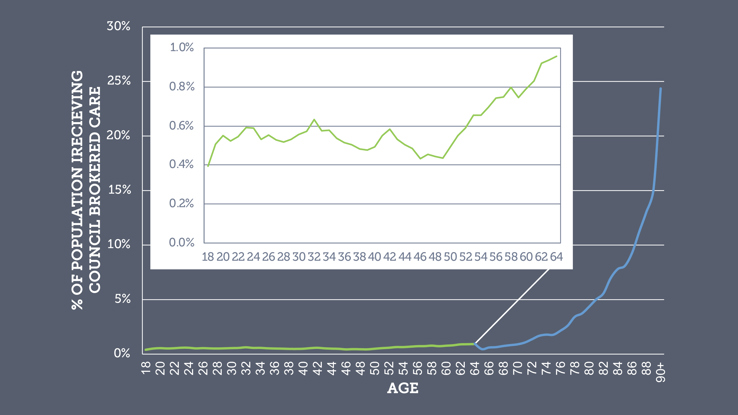 As people age past the age of 65 the chance that they will be in receipt of formal services, brokered by the council, increases exponentially: