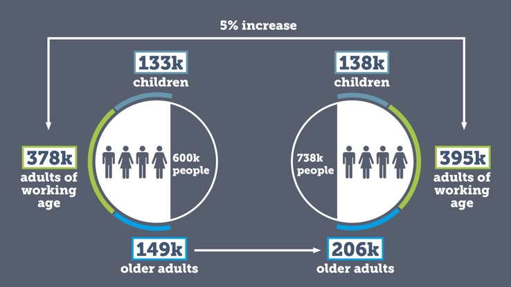 4.9% of Gloucestershire’s total workforce currently work in care. With an expected 29% rise in the number of people receiving care and the minimal change in the number of adults of working age available to join the workforce, there is an obvious challenge to capacity.