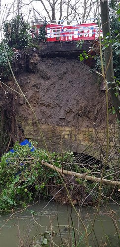 Following concerns that the bridge and pavement were in a dangerous condition an urgent inspection of the bridge was carried out in mid January 2020. The inspection identified a potential flooding risk caused by a section of the 4 metre high upstream parapet wall falling into the stream along with other debris and vegetation.