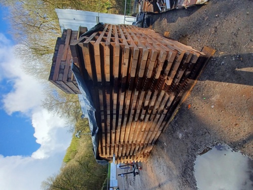 A new timber deck will be laid over the bridge in the coming weeks. These deck panels have been prefabricated in the site compound off Forge Road ready for placement.