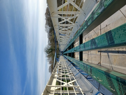 In order to complete the painting works, the encapsulation and scaffolding were removed to allow contact points to be coated. Unfortunately, persistent heavy rain during March hampered the painting process, leading to delays in the completion of the works.