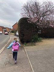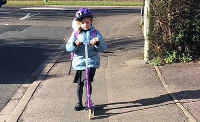 “I like walking to school as I get to see lots of different things like being able to spot flowers in spring time or being out in the sunshine in the summer! I also get to learn about how to cross roads safely. I like scooting to school the most as it is so much fun!”