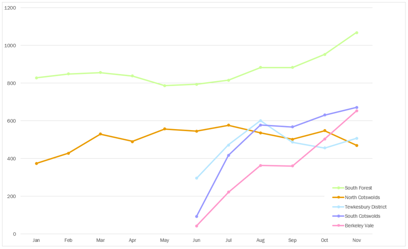 - In June 2024, three new Robin contracts started on the road, meaning that The Robin now covers most of the rural communities of Gloucestershire. Start dates are above which affect number of June service-days (RE graph below).