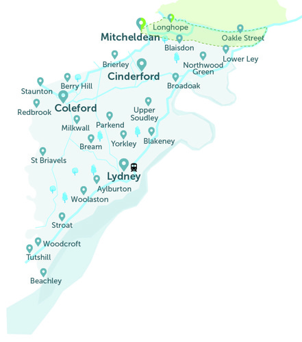 - Our South Forest of Dean area overlaps into The Robin Newent Zone (to the north), see the area inside the dotted line. This is to allow residents in these overlapping areas to choose their preferred Robin service, and not designed for onward travel into a second Robin area.
