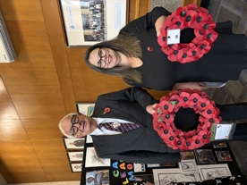 Image: Cllr Steve Robinson, Chair of the Council and Cllr Sarah Hands holding wreaths for Remembrance Day .